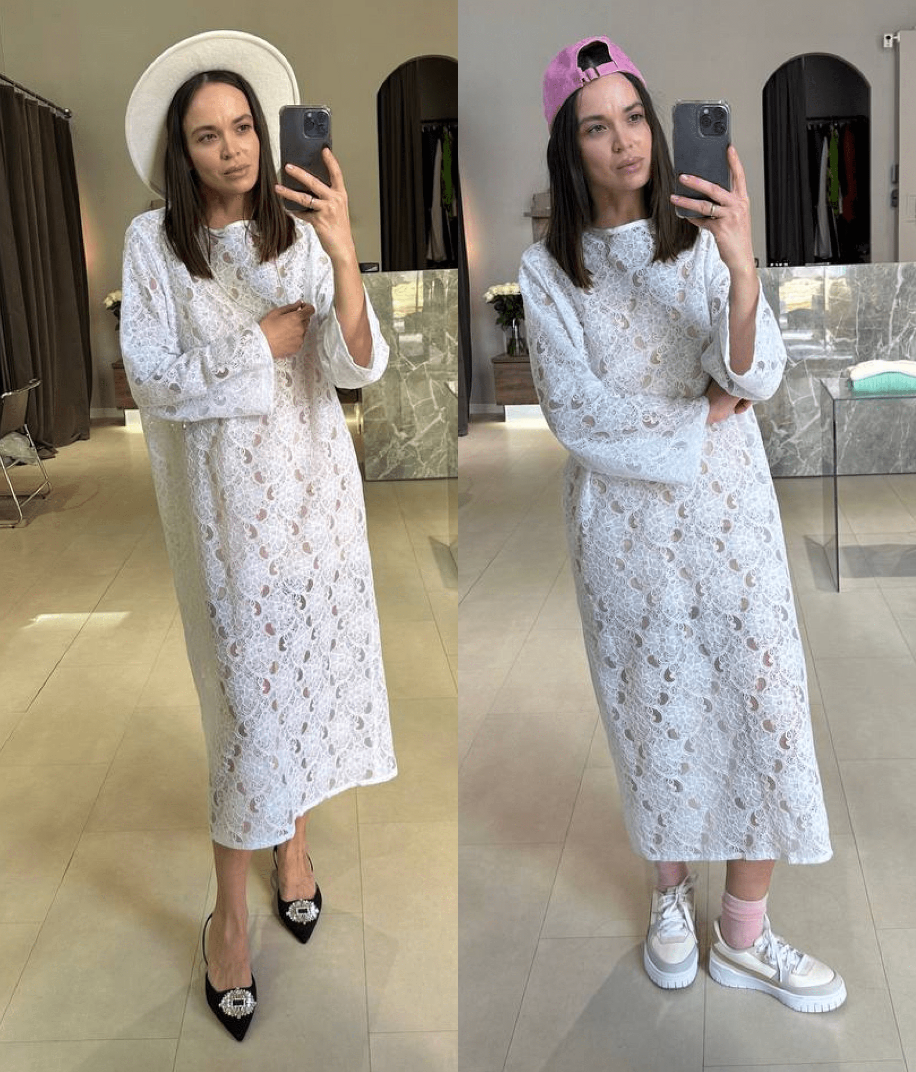 Кружево еще один тренд текущего сезона и предстоящего в том числе. Платье создает особое настроение своей невесомостью. Сочетайте платье с пиджаками, свитерами и свитшотами. Подстраивайте его под ваш образ жизни. Круто будет смотреться с балетками, босоножками, кедами и сандалиями.