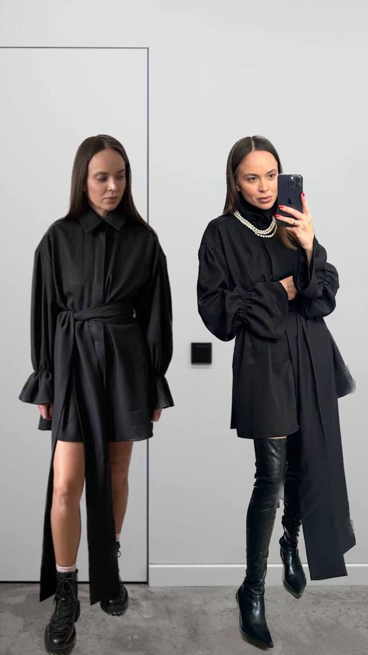 Состав: вискоза премиум качества 100% Платье блуза с пышными рукавами. Манжеты собран на резинку, регулируются по длине В комплекте широкий пояс-кушак, длиной 3метра. Пояс можно завязать как шлейф на талии или как бант на шее